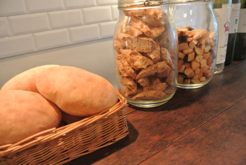 | パニーノ カウンターのおそうざいを好きな物、何種類でもはさんじゃってください。 |